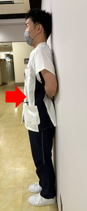 腰と壁の間が手のひらぐらいの隙間になるように意識します。