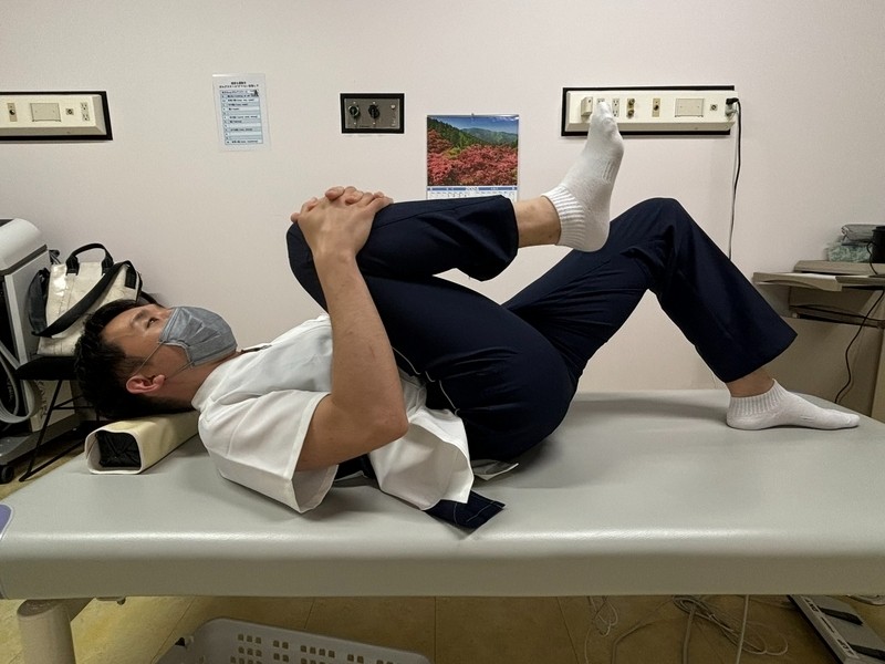 • 同時に片足を両手で抱え込み伸びた感じがあれば10〜20秒維持します