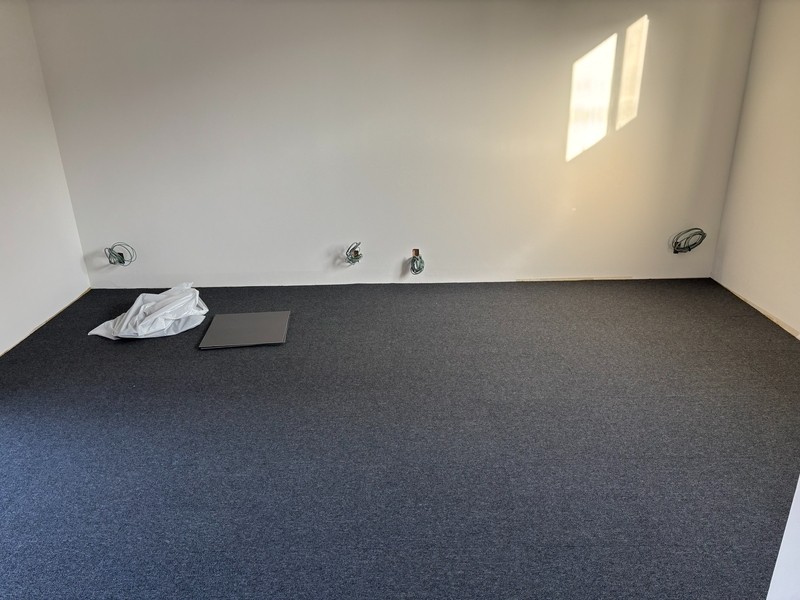 床のマットが貼られ、エアコンの設置が完了しました。