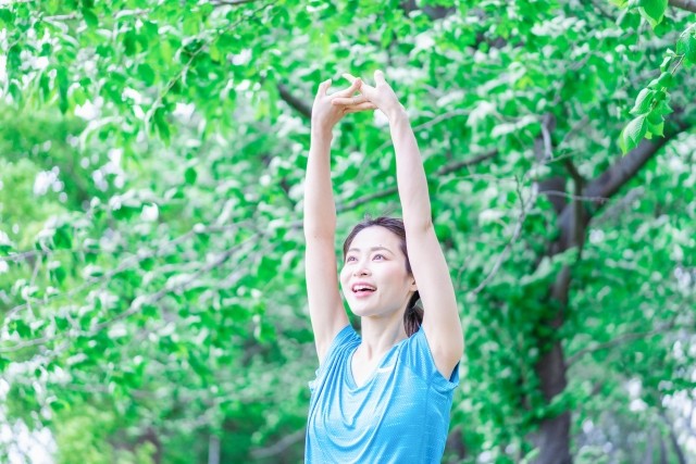 同じ姿勢はできるだけ避けて、立ち上がって背伸びをしたり、軽いウォーキングをしたりして体を動かしてみましょう。
