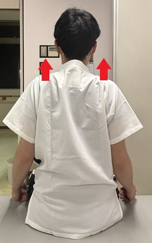 ・少し胸を張った状態で両肩をすくめます。