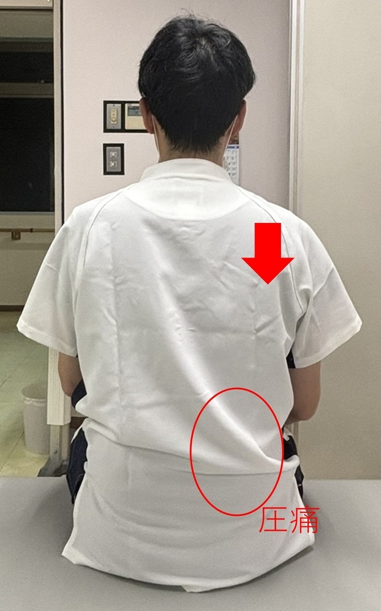 そして、背骨の右側を指で圧迫すると痛み(圧痛)がありました。