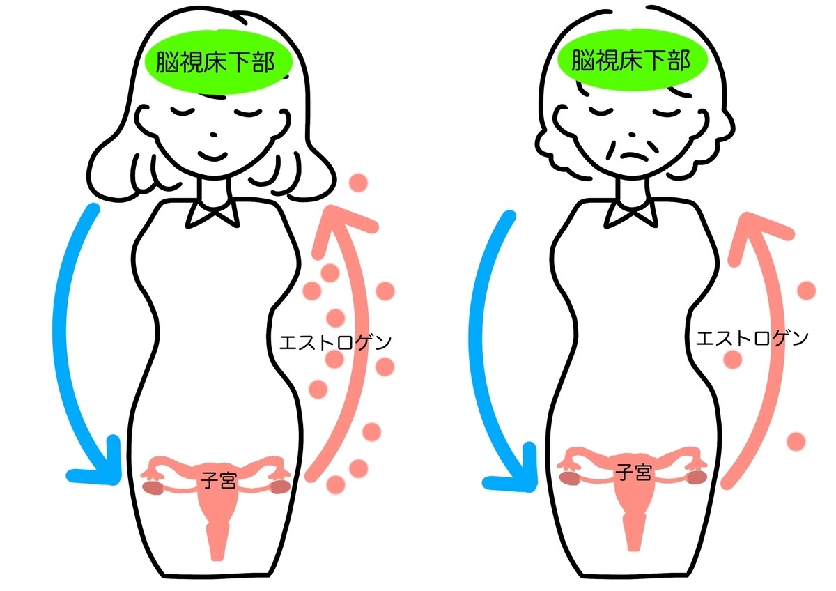 また、エストロゲンは体温調節や自律神経のバランスを整える脳の視床下部(ししょうかぶ)というところに作用しています。