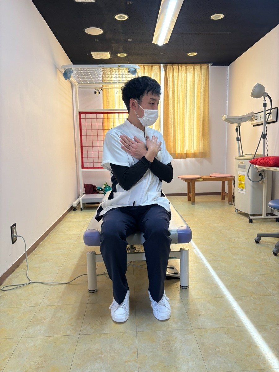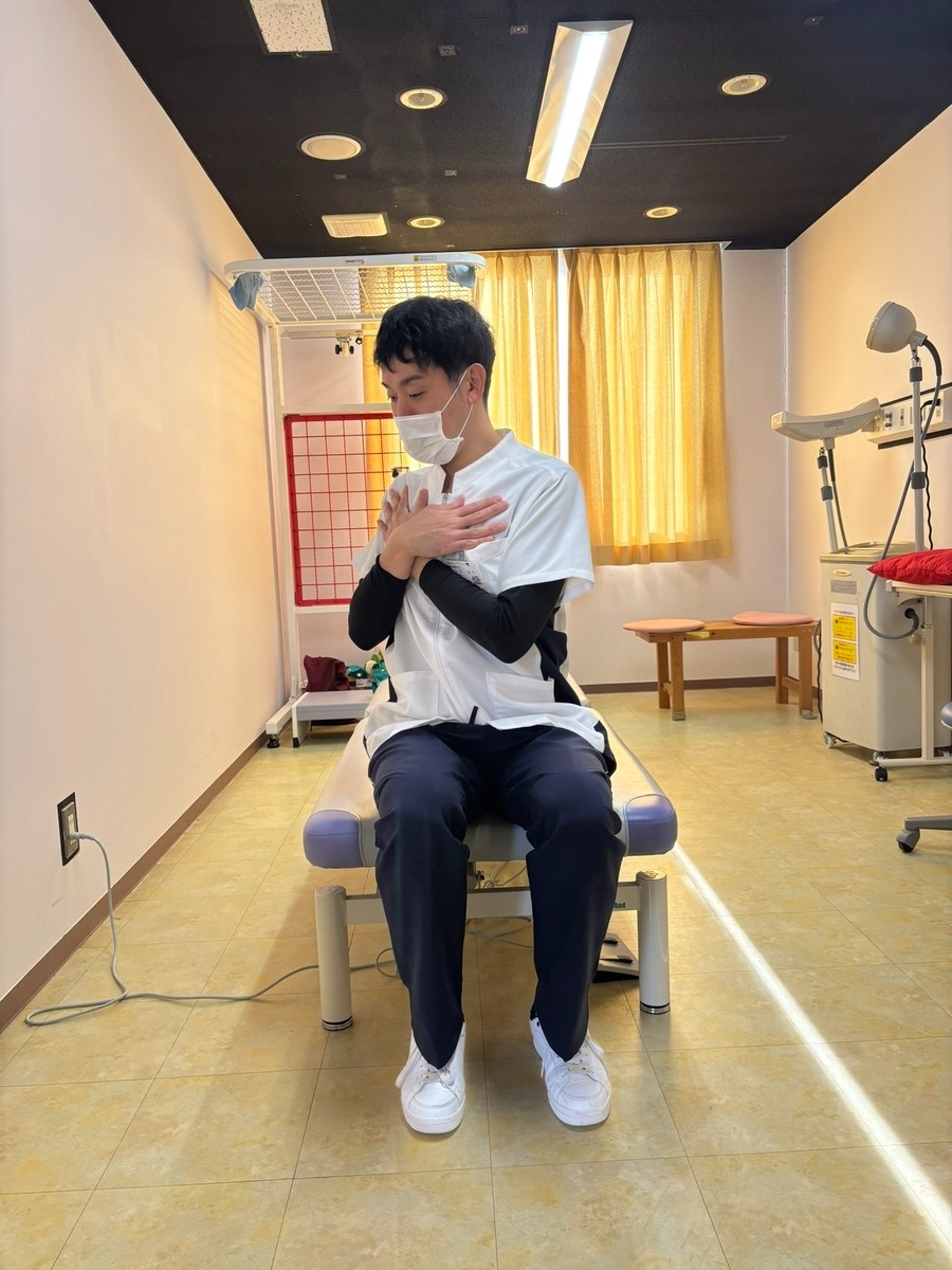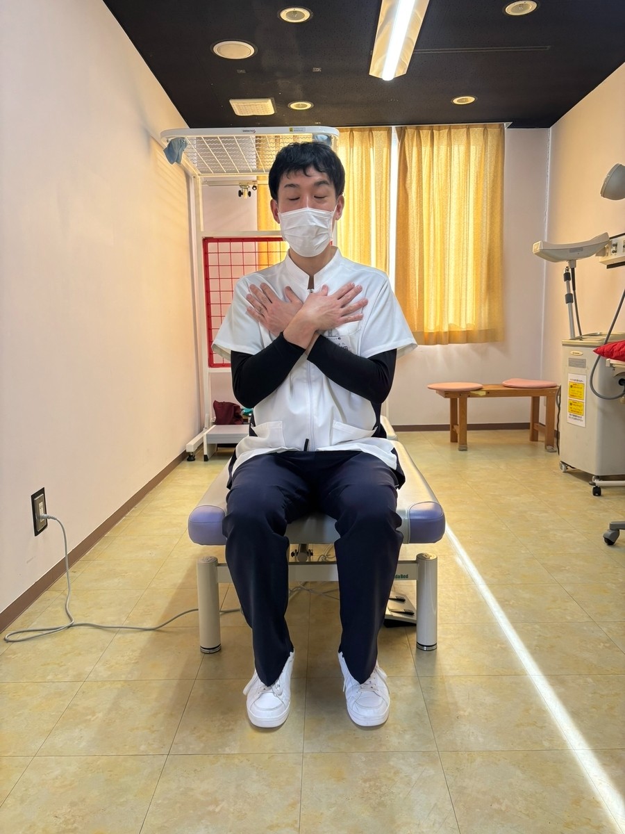 ①まず、背筋をしっかりと伸ばし、正しい姿勢を取ります。
